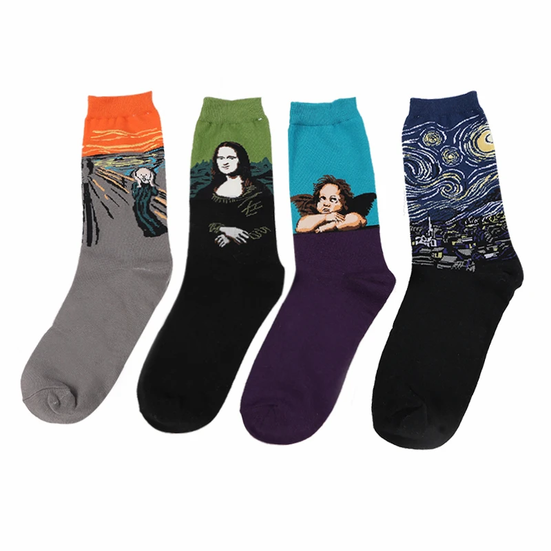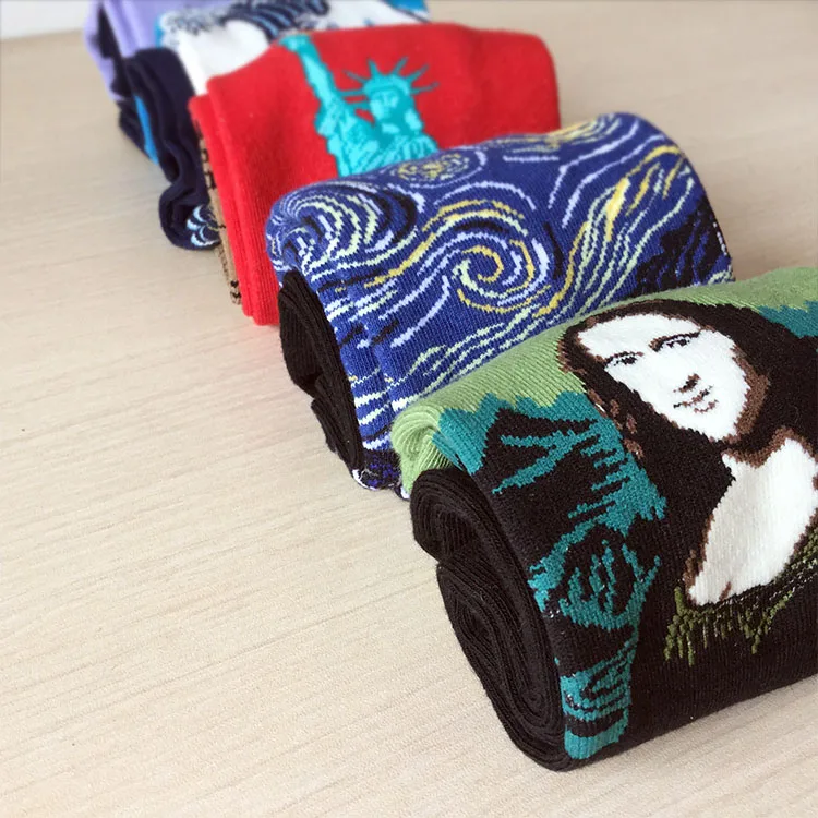 Custom Wholesale Fashion Colorful Patterns Animals Fruit Plant Cute Cool Crew Men Women Happy Socks Unisex Organic Cotton Funny Socks