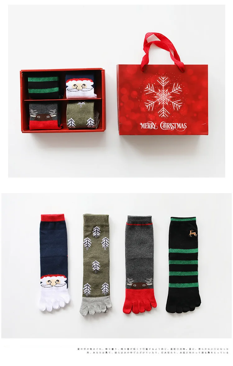wholesale custom 4 pairs/gift box Cartoon Holiday Gift socks Christmas five-finger socks