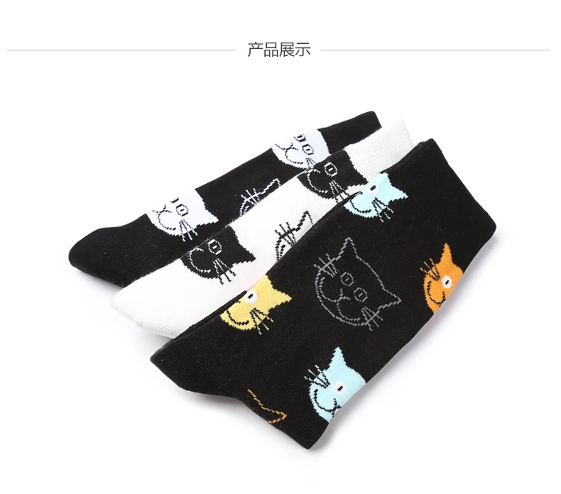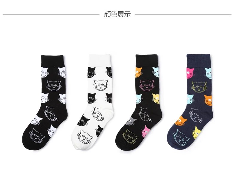 wholesale custom Bonypony Funky Cartoon Cat & Dog patterned Socks Combed Cotton Colorful Novelty Crew Dress Socks